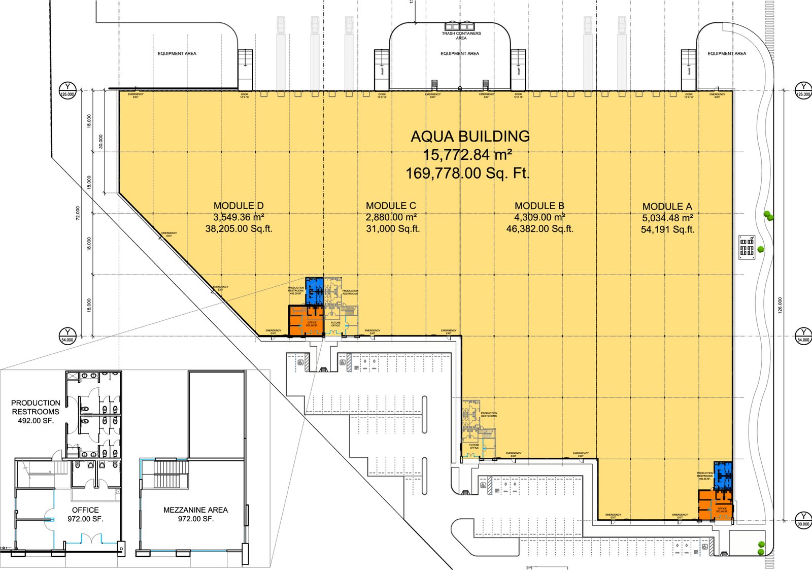 Production restrooms: 91 m²